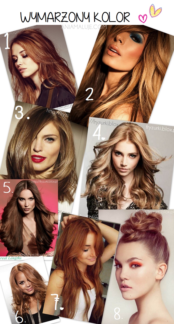 nie potrafię sobie wyobrazić Ciebie, Aniu w blond włosach. Nawet jeśli byłby to ciemny blond. ale myśle, ze kolor ze zdj. 5 byłby w Ciebie w porządku. Bardzo podoba mi się tez nr 1