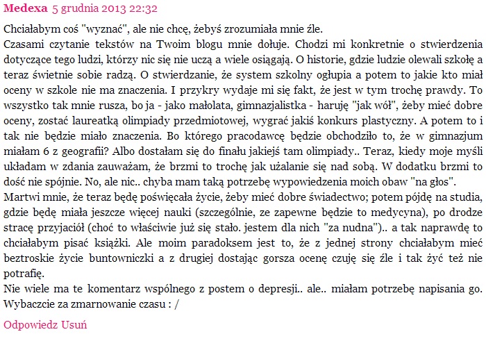 Przyczynkiem do tego tekstu jest komentarz młodej, fajnej, utalentowanej dziewczyny. Napisała tak: