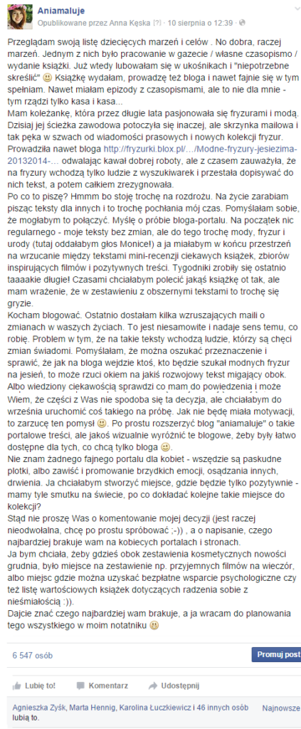 Zrobiłam niedawno małe rozeznanie na facebooku i najpierw chciałabym, abyście przeczytali ten tekst :