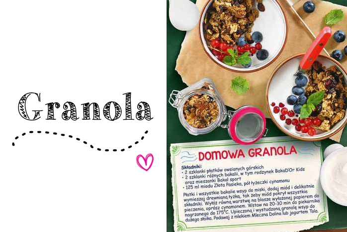 Zmieniając temat na lżejszy – gdy na instagramie padło pytanie o to, co wrzucam do swojej granoli, ze wstydem musiałam odpowiedzieć, że używam gotowej 😀 Uwielbiam czekoladową firmy Sante, jest przepyszna! Ale czasami warto zrobić coś domowego. Szczególnie, gdy jest błyskawiczne w przygotowaniu. Tym razem zainspirowała mnie ….gazetka 😀 (