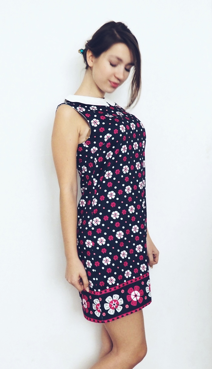 Jeśli chodzi o zdjęcie – na sobie mam czółenka Dorothy Perkins, które upolowałam kiedyś za 15 zł (klik) i sukienkę do zakupu której przekonała mnie (nieświadomie) koleżanka ze studiów (pewnie tego nie czyta, ale pozdrawiam Haniu!). Miała piękną bluzkę w podobny wzór z takim kołnierzykiem i bardzo mi się to spodobało. Sukienkę kupiłam tutaj (klik). Bardzo podoba mi się jak zestawiła ją z butami modelka, i chociaż to typowo “polskie” zestawienie, to trochę brak mi odwagi. Swoją drogą – czy w jakiejś sieciówce są teraz takie buty? ;))