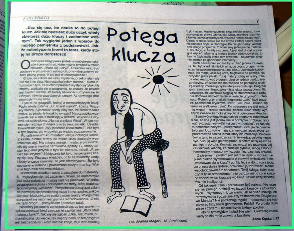 Ponieważ felietonów w starej prasie nie da się aktualizować o dopiski, to w 2010 okazało się, że napisałam matury rewelacyjnie i mogłam iść na każdy studia na jakie chciałam… ale poszłam na pedagogikę. NO COMMENTS PLX! Mnie to naprawdę jara!