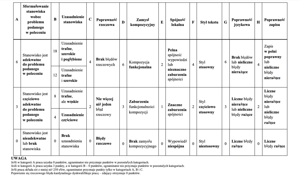 Klucz wypracowań istnieje głównie po to, aby nie oceniać prac na bazie widzimisię. Aby były jednakowe kryteria dla wszystkich uczniów. Pamiętacie nieszczęsny podwójny rocznik i rekrutacje? System był nie fair, bo czasami czyjaś trója była trudniejsza do zdobycia niż piątka innego ucznia, który ma lajtowego nauczyciela. Jednakowe kryteria w postaci klucza mają ten problem zredukować do minimum.