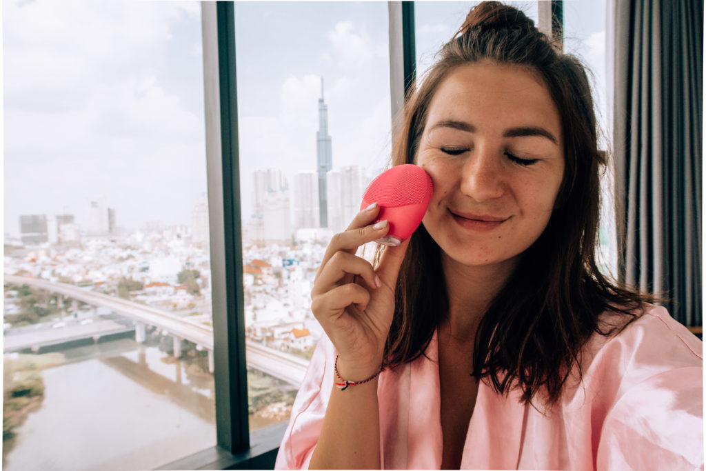 Moje dni są pełne wrażeń. Rano myję zęby, smaruję twarz kremem z filtrem i ruszam cieszyć się podróżą. Czasami w pełnym smogu mieście, czasami zdobywam wulkan. Po całym dniu mam ochotę od razu zasnąć, więc wieczorem zmywam filtr (lub makijaż) z twarzy. Dla oszczędności czasu korzystam z 30-sekundowego trybu Glow Boost. Delikatne pulsacje są przyjemnie relaksujące!