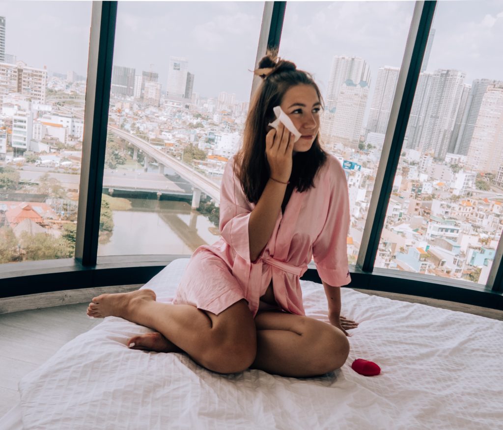 O właśnie, jeśli przy odpoczynku jesteśmy – zabrałam w podróż kilka maseczek w płachcie, ale jak dotąd użyłam tylko jednej! Powinnam się poprawić 🙂 Oprócz tego w mojej kosmetyczce znalazło się miejsce na hydrożelowe płatki pod oczy. Kojące szczególnie po pracy przed komputerem. Niestety nie jestem w Azji na wakacjach – trochę pracuję zdalnie.