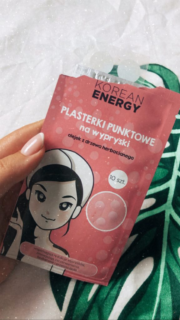 Zwykłe, okrągłe przezroczyste plasterki z olejkiem z drzewa herbacianego. Obecne kupiłam w biedronce za 1.99 zł/10 sztuk, ale tak samo sprawdzały mi się z Isany i jakieś koreańskie z hebe. Dzięki nim nie macam krostki paluchem i szybciej się goi. Czy są niewidoczne… zależy od tego jak pada światło.