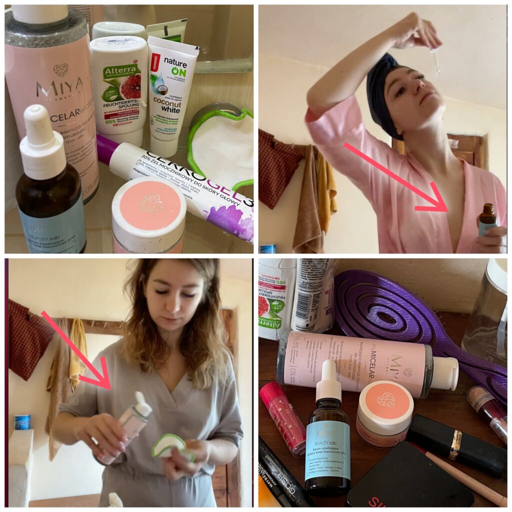 Używam codziennie (po kilka razy) kremu z filtrem, więc nawet jeśli się nie maluje mocno, mam z czego oczyszczać buzię. Nie jestem fanką miceli, bardzo lubię olejki do demakijażu, ale w podróży przykładam się do dwóch etapów. Moja buzia dotyka dawno nieczyszczonych foteli w autobusach i tak jak ja pilnuję się zazwyczaj aby nie macać jej paluchami, tak teraz robię to aby odgarniać włosy, komary i ocierać pot z czoła. Nie zasnę bez trzech rzeczy- zrobienia siusiu, umycia zębów i demakijażu/umycia buzi. Stosuję cały czas wielorazowe waciki, łatwo je wyprać, szybko schną i nie ma potrzeby sięgać po te jednokrotnego użytku. Przyznam, że początkowo byłam wobec tego płynu sceptyczna, ale zgubiłam ładowarkę od szczoteczki sonicznej do twarzy i musiałam trochę zmienić swoje rytuały. W duecie z olejkiem jest miłość!