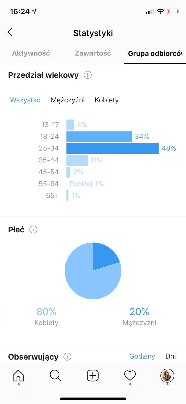 Instagram: 39 tysięcy followersów, polska publika, 80% stanowią kobiety